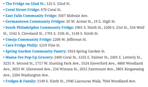 不只Mount Airy,费城很多地区都设置了相似的食品储藏室,有需要的朋友可以在以下地点寻求帮助: