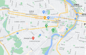 红色图标为Shangri-La中餐外卖位置 图片来源:谷歌地图