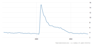 拜登表示,目前的失业率为3.4%,处于54年来的最低水平,比2021年1月拜登上任时的6.1%下降了近一半。