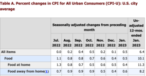 就年度来看,1月份的CPI指数已经从去年6月份9.1%的极值降至了6.4%,但与前一个月(去年12月)相比,CPI指数依然上涨了0.5%,这显示出当前的通胀环境仍旧十分顽固。