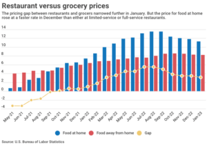 此外,餐饮行业价格依旧低于食品杂货价格,后者同比上涨11.3%,1月份上涨0.4%。在市场占有率的竞争中,这是一个值得关注的重要基准。