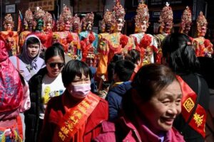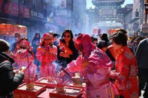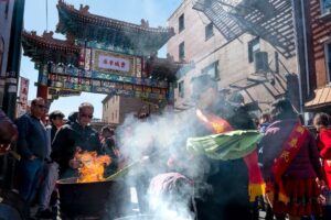 纪念活动在唐人街举行,吸引了不少人前来观看、祈福。