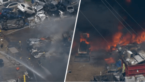 在垃圾场中被废弃的汽车起火后,包括卡尤加小学(Cayuga Elementary School)的学生在内的全费城居民,都能看到火场升腾起的滚滚黑烟。