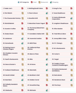 知名在线点评网站Yelp于4月13日公布了2023年全美最受欢迎的50个品牌的排名。