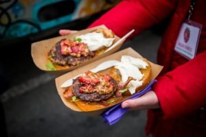 40多辆快餐车从费城各处汇聚在这一年轻人扎堆的街区,在街边一溜排开;再加上20多家本地餐厅的摊位,这条“小吃街”长达一公里。