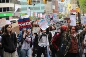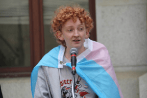 组织者韦斯·艾伦(Wes Allen)是中央高中的一名学生,他在感谢所有集会者之后说:“美国即将出现的反跨性别立法堪称是种族灭绝。许多示威者和抗议者聚集在这里,要求保护跨性别者的权利。”