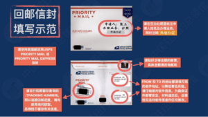 (1)回邮信封请使用美国邮政局USPS PRIORITY MAIL信封或USPS PRIORITY MAIL EXPRESS信封(注意:请不要使用UPS、FedEx等其他信封)。