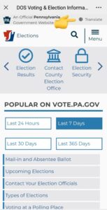 大家可以用手机或者电脑登陆vote.pa.gov,然后点击页面右上角的translate选项, 选择简体中文或者繁体中文,即可跳转到中文页面开始浏览相关信息。