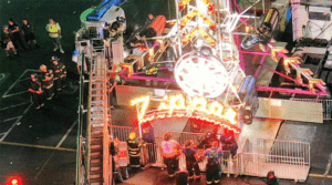据嘉年华安全员说,他们在巡逻时听到一声巨响,立即前往并发现一台游乐设施发生故障。救援人员迅速稳定了这些笼子,并保持乘客的情绪稳定,同时专门的救援小队展开高空救援行动。