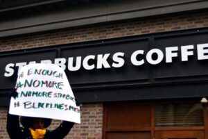 有关这笔赔款的诉讼还要从5年前说起。2018年4月,费城一名星巴克门店的经理报警称,有两名黑人男子坐在咖啡店里,没有点任何东西。这一报警引发了大规模的抗议活动。