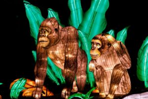 据说啊,共动用了150多名四川自贡的花灯手艺人用了数月的时间才完成。整个展出耗费2万英尺(约6096米)的丝绸,1.6万英尺(约4876米)电缆。