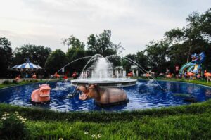 在继续探索一段时间之后,我们偶然发现了中国神话神兽展览,它藏在公园后面的一个小角落里。