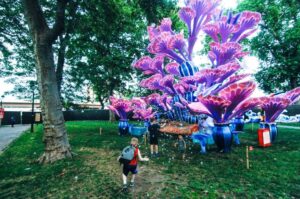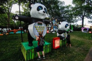 他立刻加入到一个巨大的熊猫游戏中,当时已经有几个孩子在玩了,然后找到了一棵能喷出烟雾气泡的巨大灵芝树,所有孩子一起奔跑着在弹泡泡。孩子们像是进入了一个专门为他们打造的魔幻世界。