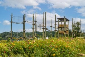 除了采摘水果,这里还有很多其他活动,如空中探险公园、家庭式探险农场、适合儿童的障碍课程,以及周末的与小山羊互动的瑜伽。