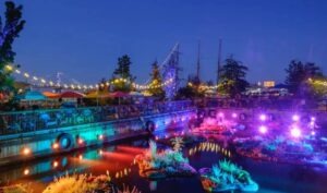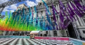 色彩缤纷的绸带随风飘扬和棋盘状的溜冰场地板营造出欢快又复古的氛围。当然此地还有更多乐趣,您可以在迪尔沃斯公园咖啡馆品尝美食,在Air Grille临时啤酒花园补充能量,或者在音乐喷泉中尽情跳跃。