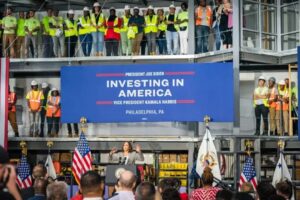 副总统哈里斯到访费城,宣布提高建筑工人工资水平