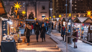 每年这个时候,LOVE公园都将被布置为一个露天的欧洲市集,为来来往往的游客们提供了一个充满节日氛围的购物和娱乐场所,游客可以在这里尽情购物,体验欧洲风情。