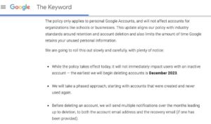 根据Google在五月份宣布的最新“不活跃账户”政策,那些至少两年没有使用的账户可能会在本周五开始被删除。如果你有一个被视为“不活跃”且有被删除风险的账户,应该会收到来自Google发送到与该账户及其恢复地址(如果存在的话)相关联的电子邮件通知。