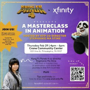 更有消息称《功夫熊猫4》的联合导演史蒂芬妮·马·斯廷(Stephanie Ma Stine)今天(周四,2月29日)将在费城唐人街开设动画大师课程,分享她在电影行业中的经历,展示绘制电影主角阿宝(Po)的技巧,喜欢功夫熊猫的小伙伴们可不要错过哦!