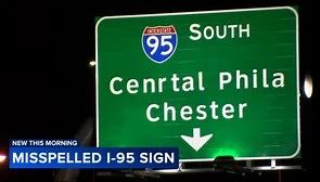 费城I-95上的一个交通标志牌因为拼写错误上“热搜”!