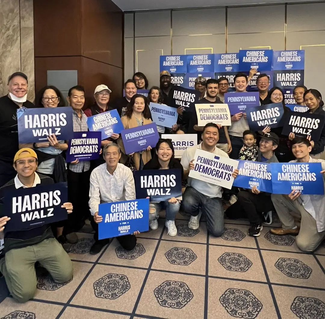上周末,哈里斯-沃尔兹竞选团队在费城唐人街的“鸭五爷”北京烤鸭海鲜餐厅举办了一场名为“点心与民主同行”的活动。