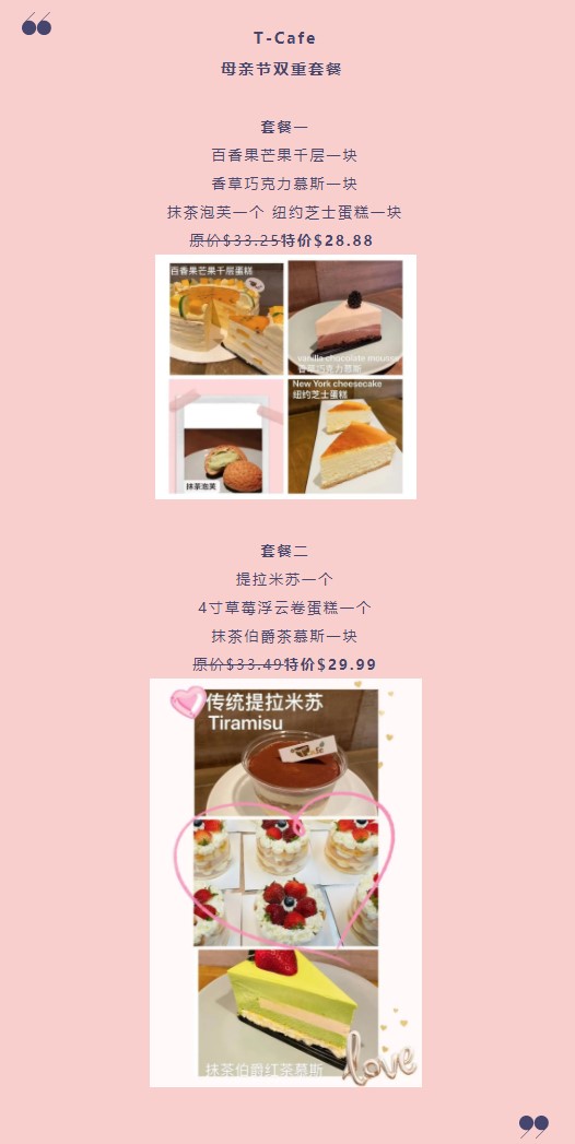 都说女人有两个胃,一个专门留给了甜品。T-cafe的母亲节限定,别忘了给妈妈点上一份哦。