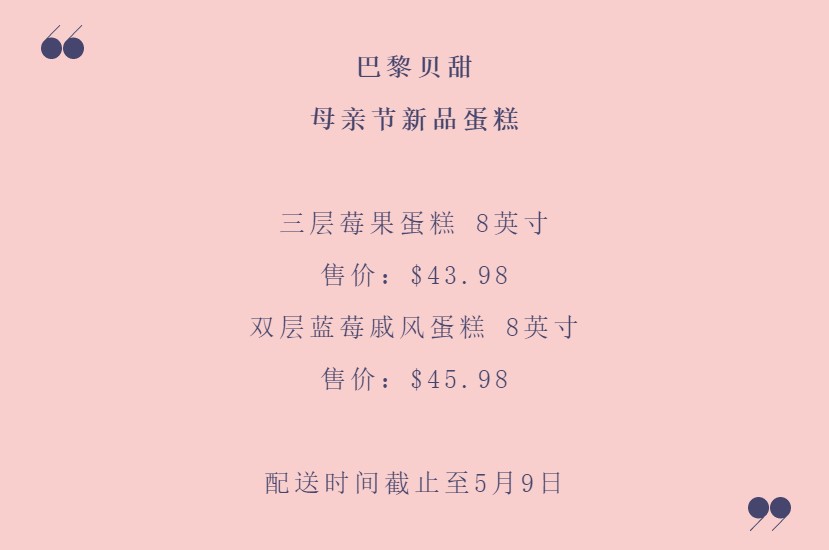 母亲节大日子,怎么少得了节日蛋糕哩。想在费城买到好看又好吃的蛋糕,在巴黎贝甜能盲点就不出差错,毕竟他们家每个节假日的限量款,都是提前好久设计和试做完美后才发售。