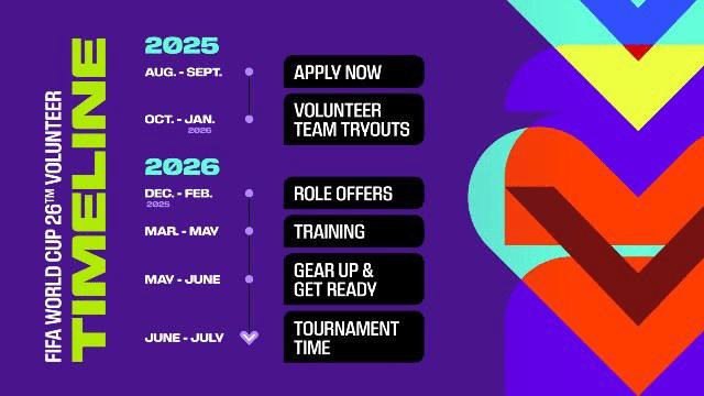 申请者需年满18岁、通过背景审查,并能在2026年6月11日至7月19日的赛事期间完成8个班次的工作。报名将持续到今年10月,申请需通过官网在线提交。