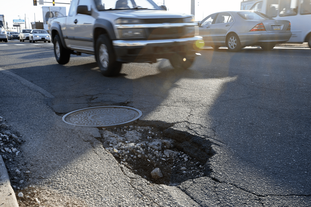 费城进入“坑洞季”:冻融循环致路面塌陷,车辆维修排长龙。