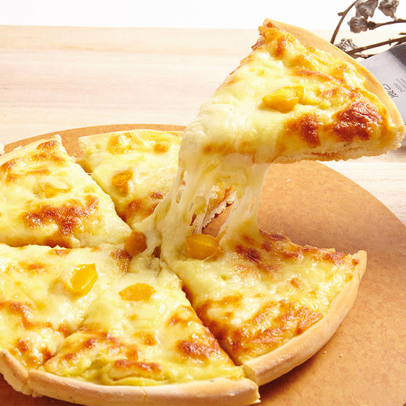 披萨里的榴莲肉撒得均匀而丰厚,看得见的大颗粒肉质绵软又丝滑,经高温烤制后甜味更浓郁。入口香浓的芝士更是和榴莲一起化在嘴里,十分满足!