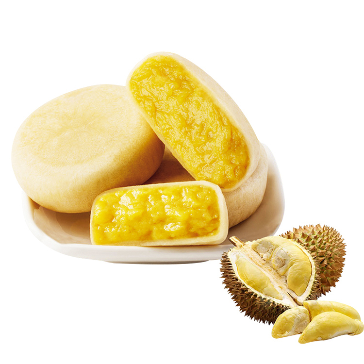 货真价实的猫山王榴莲,酥到掉渣的绿豆奶香外皮,绿豆MAX+榴莲肉MAX,榴莲控受到10000+点暴击啦!将新鲜的榴莲肉去核,用木棍爆锤成榴莲泥,这股浓香完全能让你沦陷 !用小麦粉和绿豆粉擀成面皮,把这内馅包的是满满登登,放入烤炉中烤制数分钟,胖墩墩的个头打开的一瞬间,榴莲香味弥漫开来。