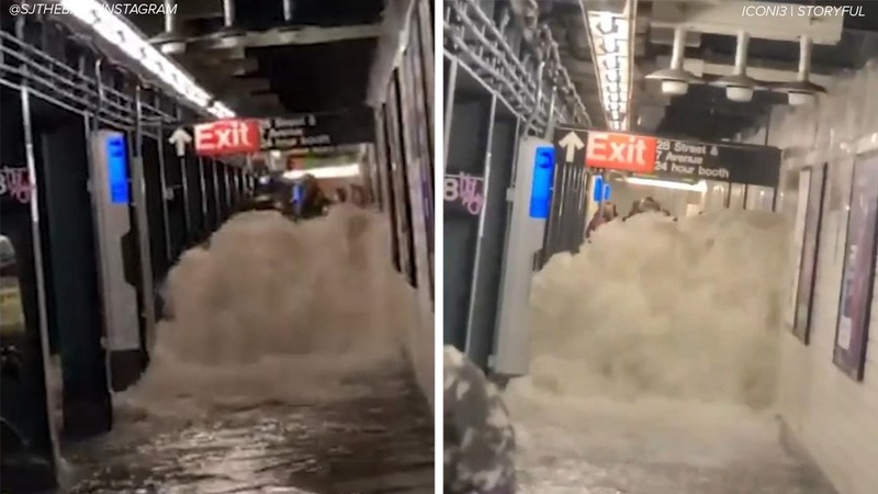 纽约爆发大洪水:火车停驶,大水涌入地铁站