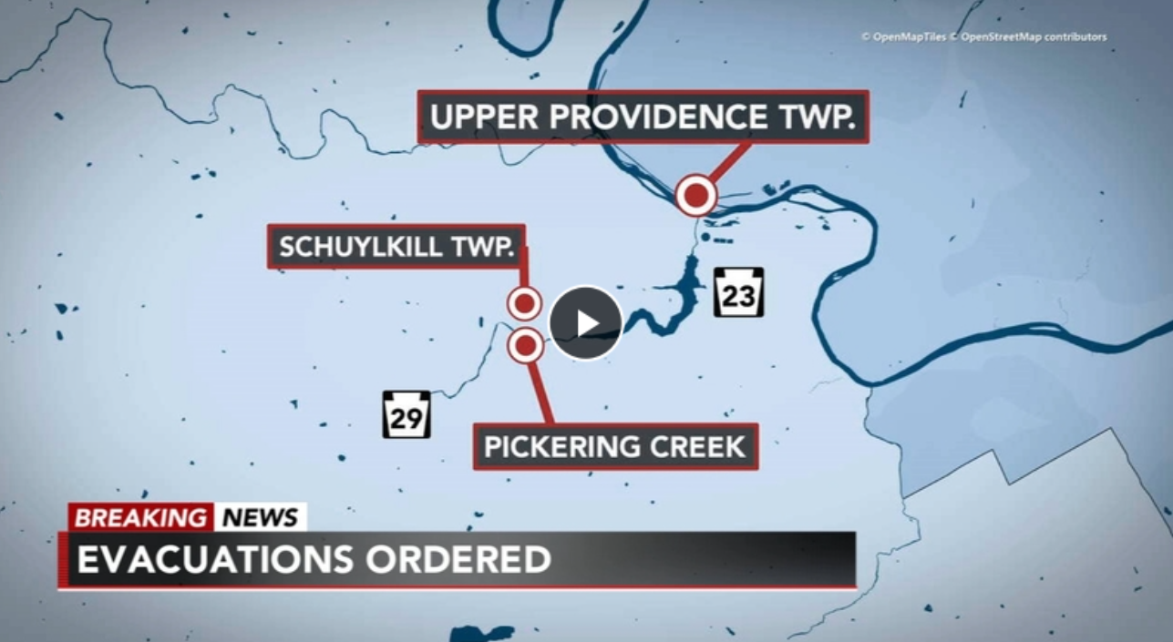 切斯特(Chester)和蒙哥马利郡(Montgomery)郡应急部门已建议,位于皮克林溪大坝下游的所有居民和商铺立即撤离。该地区在切斯特思故河镇PA23号公路上,也就是凤凰城(Phoenixville)以南的福吉谷路(Valley Forge Rd),全部撤离。