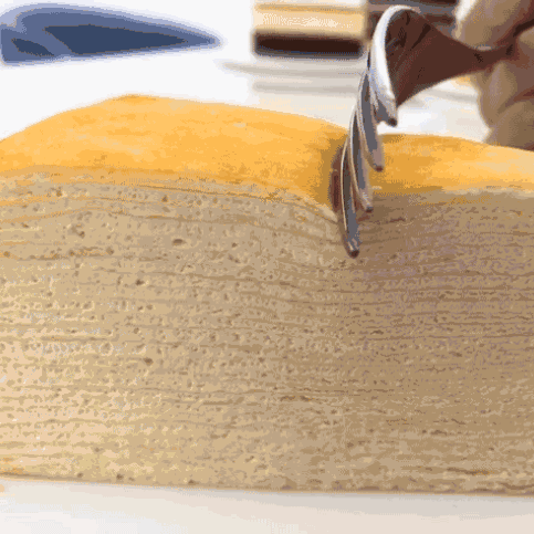 超过20层、薄如蝉翼的饼皮非常柔软,层层饼皮之间铺满了手工刷上的轻盈奶油。当叉子触碰到饼身,一切到底毫不错位!口感绵密即化,奶油十分清爽,一丝不腻!