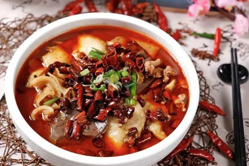 打眼望去,一片“红海洋”,新鲜鸭血,鱼片,毛肚,鱿鱼,肥肠,午餐肉,你爱的食材应有尽有。麻辣鲜香,汁浓味足。嗯,就是这个味儿!