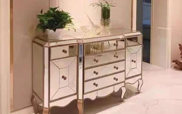 镜面收纳柜,四周镶嵌灯带,诠释新古典风。