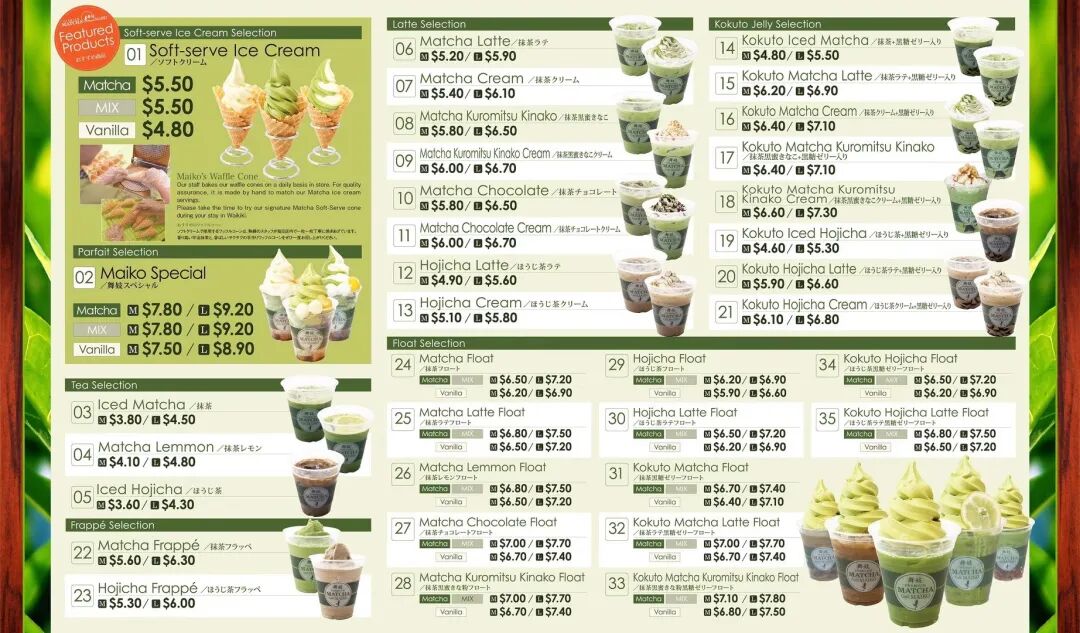 抹茶冰淇淋、抹茶拿铁、抹茶悬浮冰…