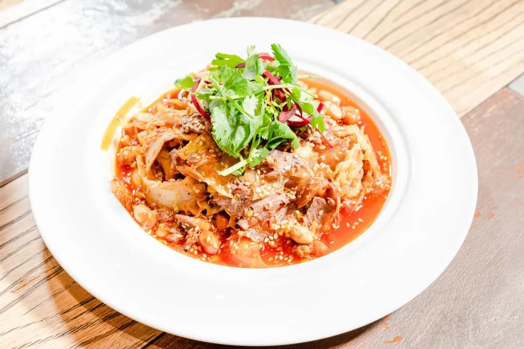 尤其是用热油浇出小米辣的香味,想起来那酸辣滋味小编又要流口水了啦。夫妻肺片虽然经典川菜随处可见,华都的味道丝毫不输给正宗川菜。一大瓷盘新拌的肺片端上桌,颜色青红碧绿,浓艳透亮。