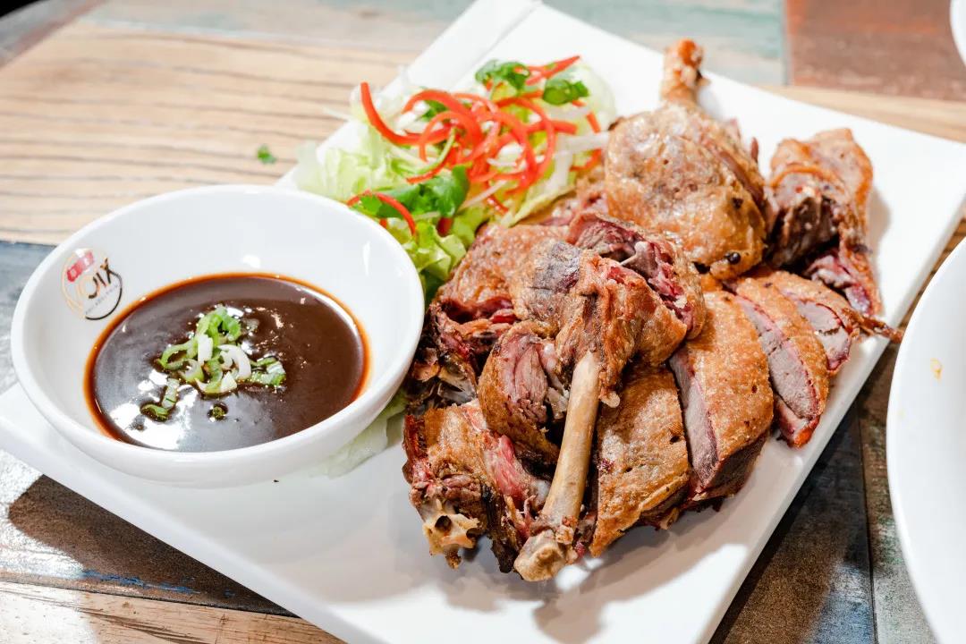 樟茶鸭是市面少见的百年名菜。华都选用秋季上市的肥嫩公鸭,经腌、熏、蒸、炸四道工序制成。成菜色泽金红,带有樟木和茶叶熏制的特殊香味,鸭子口感外酥里嫩,看着就流口水有木有!