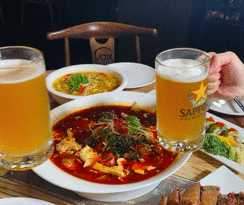 在这辣爽的川菜馆子里,来上一杯啤酒绝不会错。微微的酒精不至于醉人,却能放松一天的疲累。SAPPORO清冽的口感,麦香和酒香的完美融合,都是独一无二的。冰爽配麻辣,那叫一个巴适!