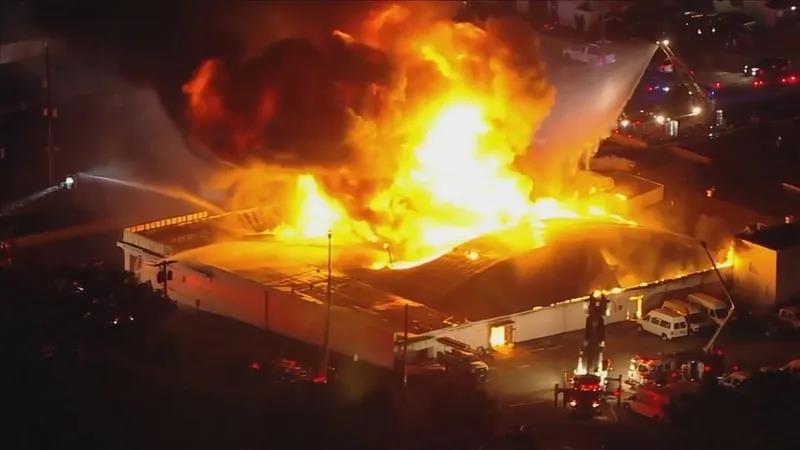 费城周边某镇一汽车大楼发生四级大火
