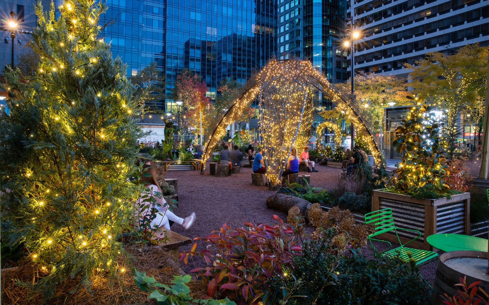 11月1日,迪沃斯公园(Dilworth Park)将第一波节日景点带到费城。从本周一至2022年春,居民们可以在这里的草坪上纵享冬季乐园之趣。这是一个人工打造的露天仙境,温馨的Led灯带、修剪一新的绿色植物和应景的装饰,为大家提供一个放松惬意的交谈空间,也超级适合拍照的。而且周边的售货亭还专供热葡萄酒哦。
