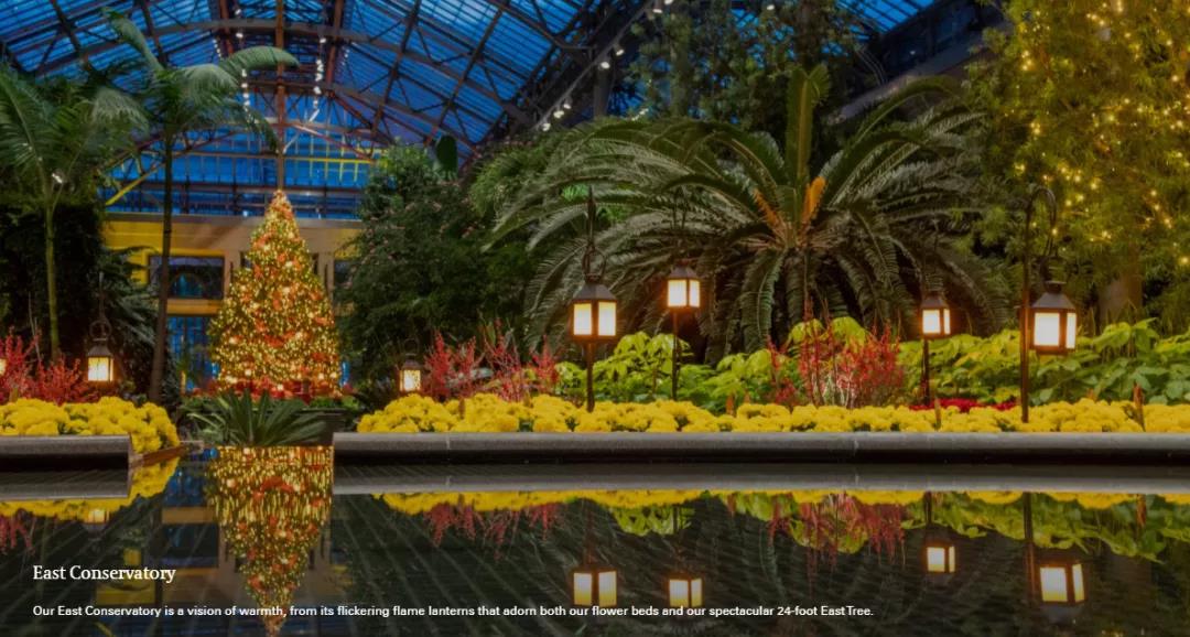 费城著名的长木花园(Longwood Garden)推出了圣诞主题的游园活动。该活动以“火与冰”为主题,用50万盏炫目的灯光和熊熊燃烧倍感温暖的三个大火堆,让你感受冬日中你最炙热最迷人的圣诞。每一个转弯还都藏着惊喜。