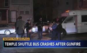 上周五(12月9日),天普大学(Temple University)的一辆穿梭巴士在把学生从校园运送回家的途中,和一辆深色汽车相撞,造成巴士前部轻微损坏。据巴士司机反映,他在开车的时候听到了一连串枪声,并在惊恐中紧急停车,才导致了车祸的发生。