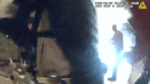然间,场面出现失控,女子手持一把尖刀冲出了房间,而警察则喊叫一片,牵着警犬的警察和另一名警察避退不及,仰倒在走廊上,旁边几名警察迅速瞄准开火,女子直接倒地,当场死亡。从视频来看,当时,4名警察在走廊上大约对女子连射了10枪。