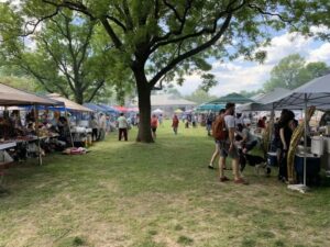 In recent years, the market setup has followed a schedule of when they have to move. From April until the end of June, the market is located by the Broad Street entrance. From July to November, the market moves over to the baseball fields at the park. This yearly transition is difficult for vendors, particularly those selling food, who sport heavy grills and other equipment that need to be set up and broken down each day.