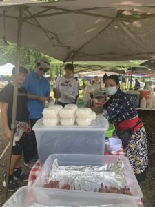 As one of the only Thai vendors at the market, Sanjai enjoys sharing her meals and Thai iced tea with a diverse demographic of customers who come by her booth. She cheerfully acknowledges that for now, the work is not highly profitable, but it is satisfying.