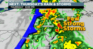 强冷锋将于本周四(10月13)下午抵达费城,锋前降雨可能在中午就开始下。费城北部和西部区域降雨明显。急剧的气温变化,将有可能带来本季迄今为止最冷空气。周四下午晚些时候会有更强的雷雨,降雨将持续到晚上。更可怕的是,暴风雨还将裹挟着时速为100公里/小时的阵风,有可能会造成灾害性后果。