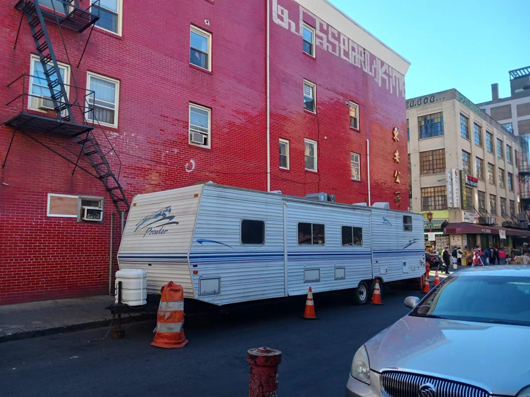 上周六(11月26日),费城华商莫伟良、Lynn Mac夫妇把捐赠的房车安置在费城唐人街第10街和Cherry街的街口,在东安公所和消防局之间。